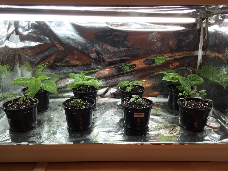 (vzadu zleva) 2x Bhut jolokia Chocolate, 2x TSM