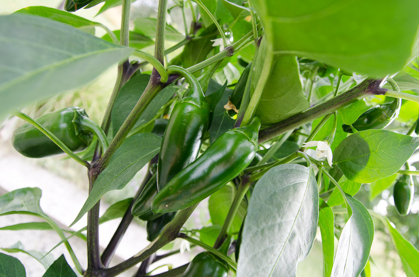 Jalapeňo z Bauhausu (Polabská zelenina), 50cm výška rostlinky, 4-5 cm délka plodu (zatím).