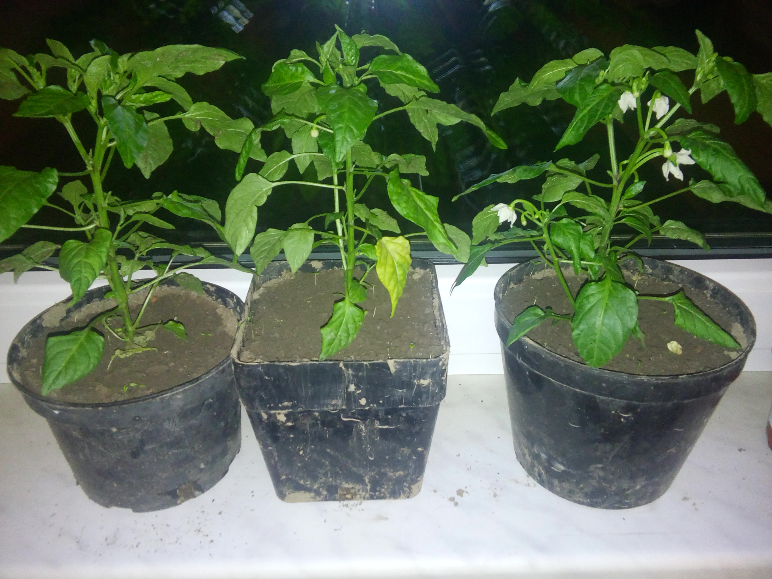 Tři papriky, které byly napadeny postřikem. Foto je pořízené těsně před druhým postřikem Vertimecem na svilušky.