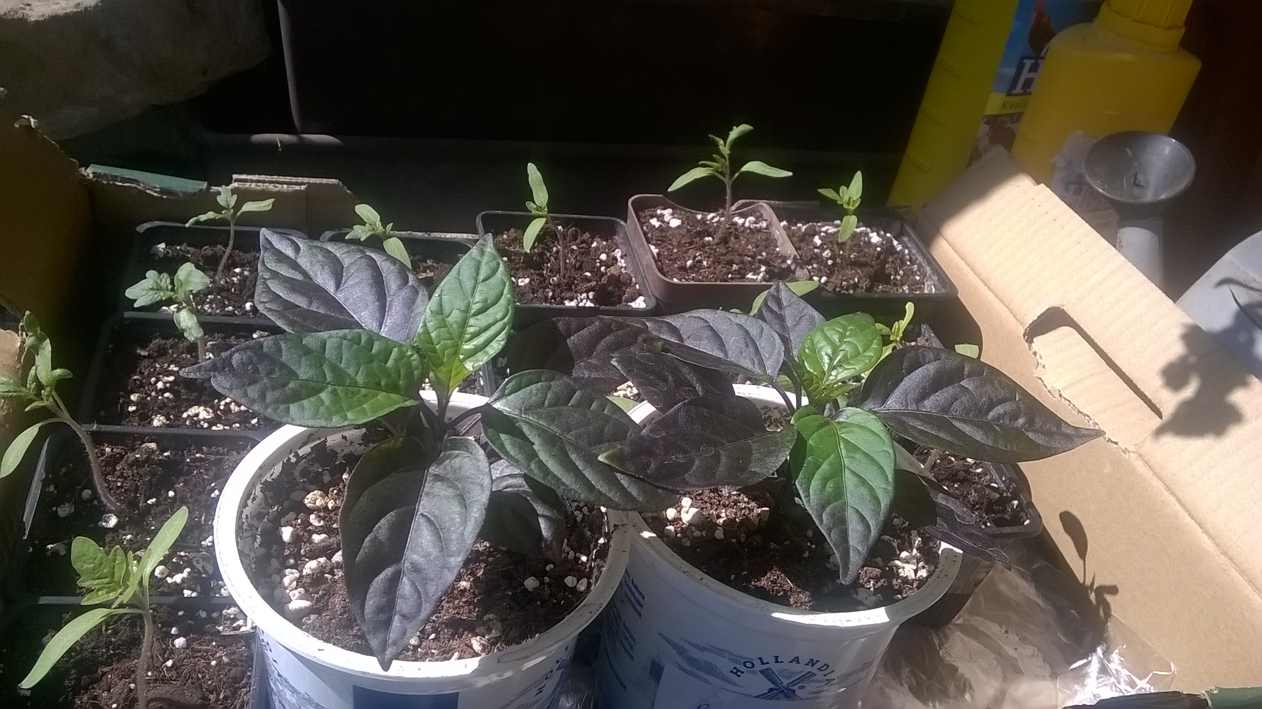 Dnes je na opalování. Black pearl, okolo rajčata.