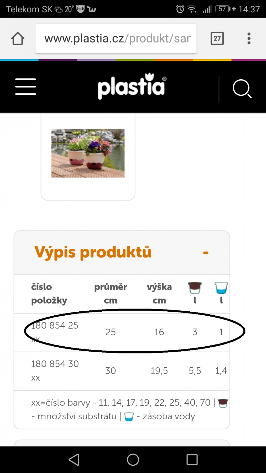 samozavlazovaci plastia 25cm