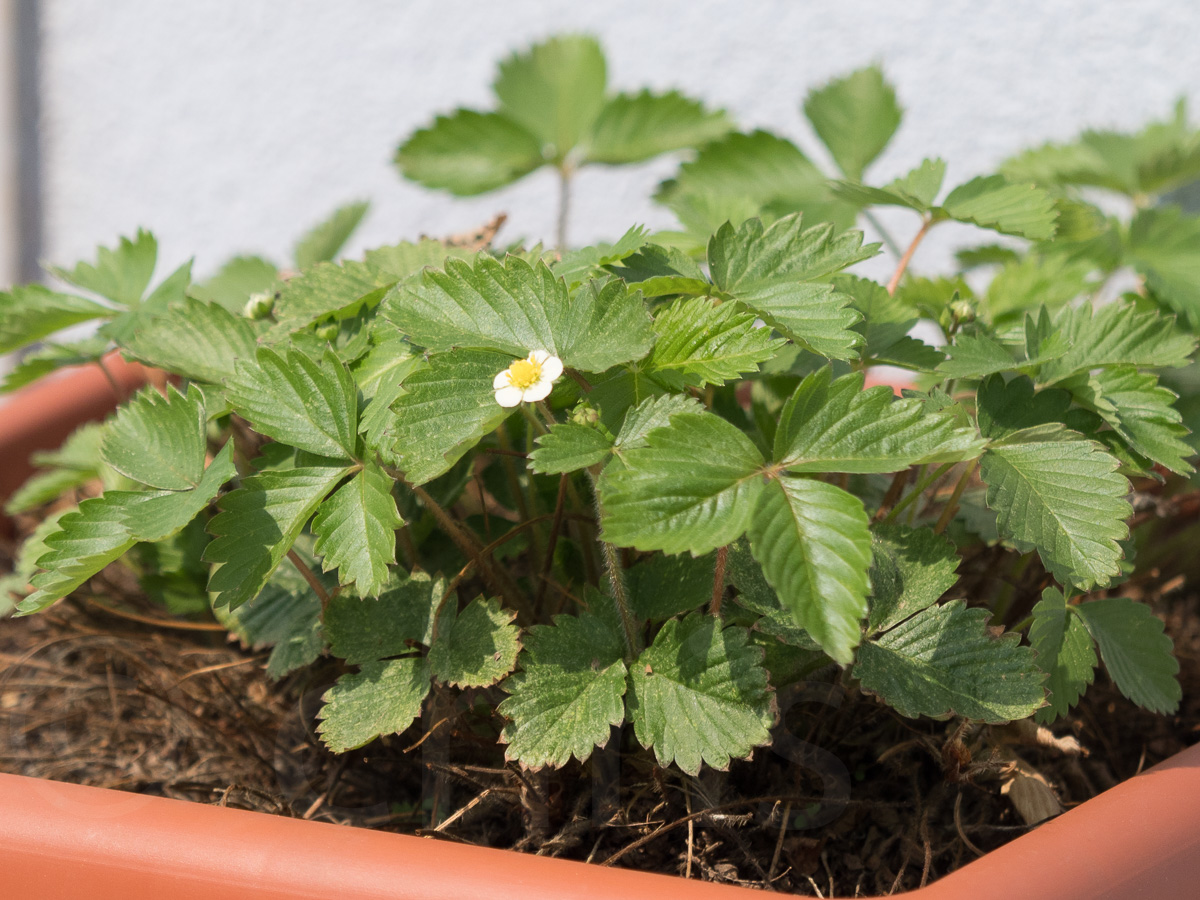Loňské jahody ze semínek začínají kvést