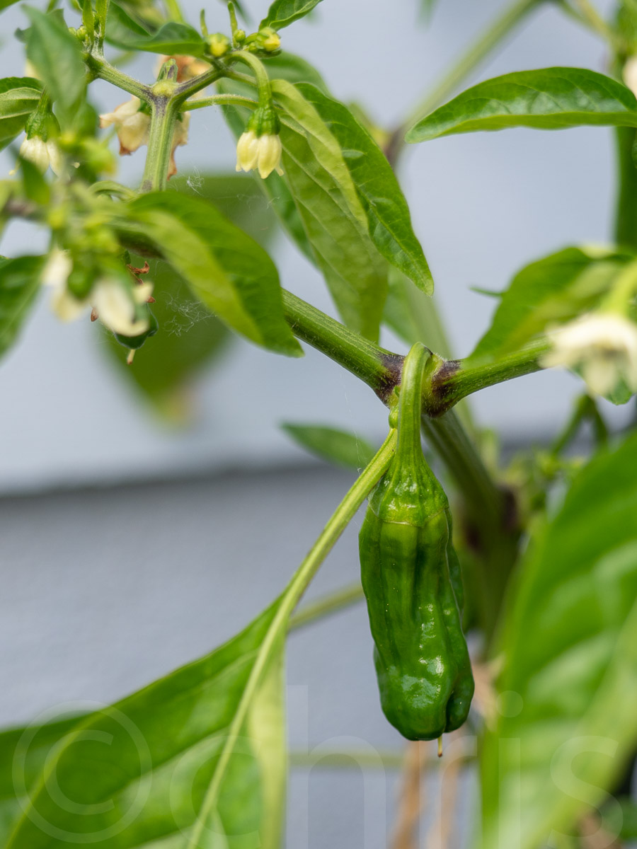 Shishito - plody rostou pěkně ale už vidím i první podezřelé pavučinky...