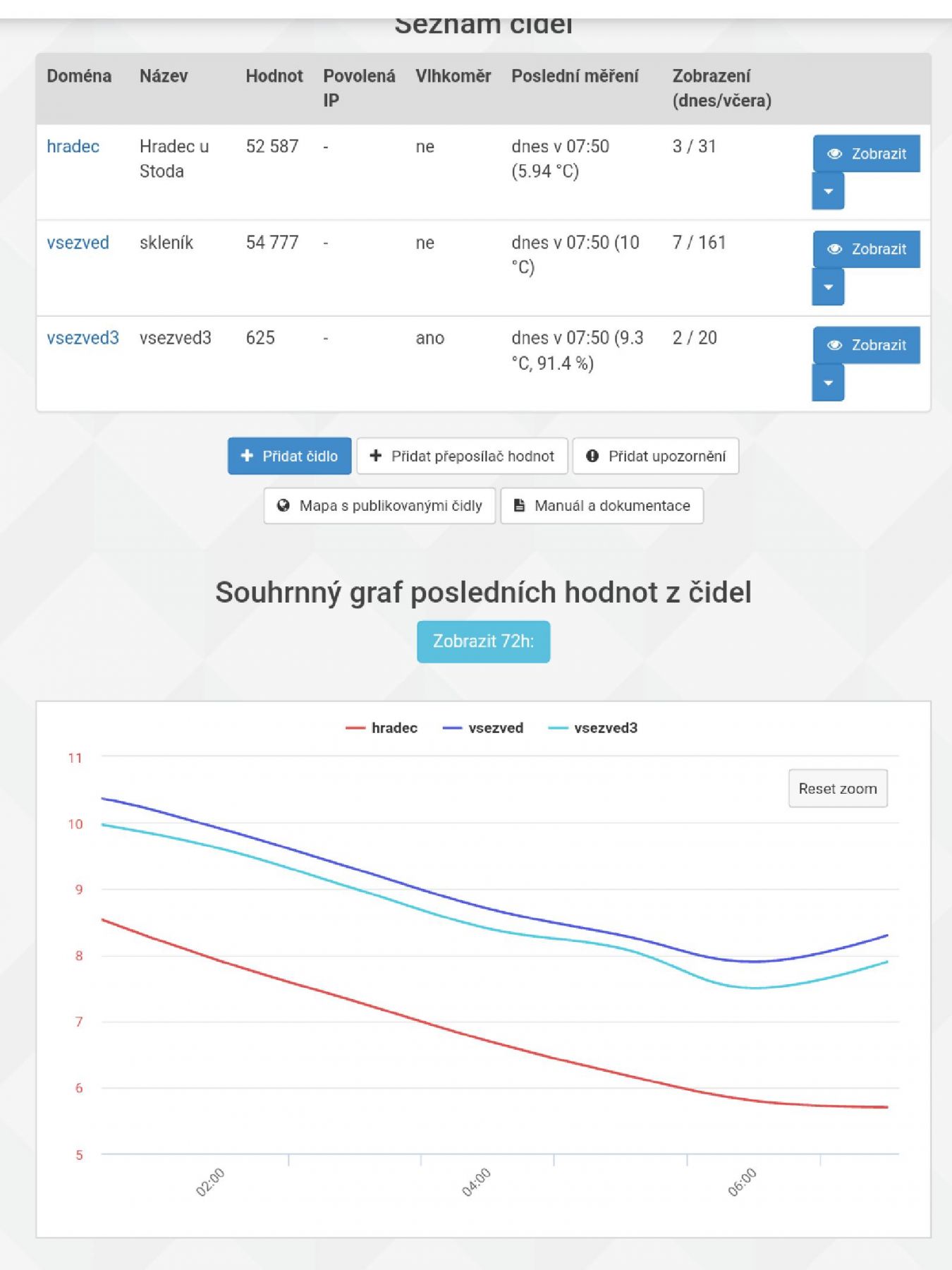 rozdíl teplot čidel