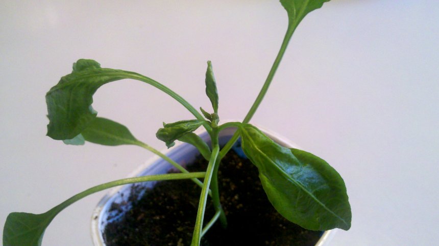 Pokroucené listy u sazenice E. trunk