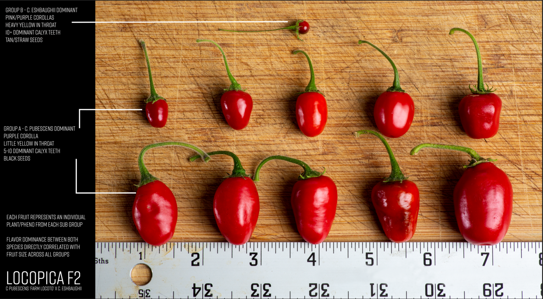 Ukázka variability F2 generace odrůdy Locopica, © Rich Blood / The Pepper Guru