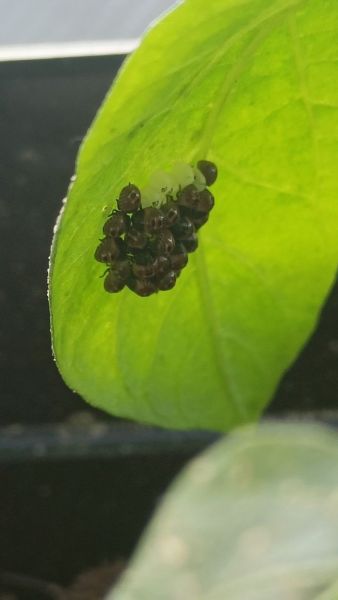 Ano, je to nějaká ploštice (kněžice). Já bych utrhl list a hodil ho někam do parku. Ploštice se živí šťávou z rostlin a asi by jsi nebyl rád, kdyby Ti oslabovaly papriky.