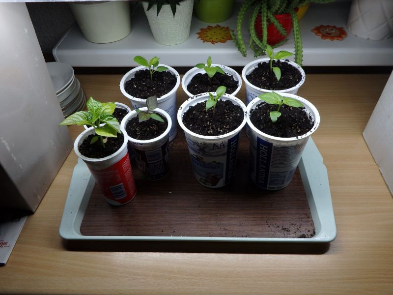 Odrůdy C. Baccatum jsou ve větších kelímcích, odrůdy C. Chinenses v menších. Počkám cca 2 týdny, až se holky chytí a pak tradá k novým majitelům.
