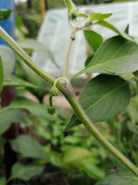 Odrůda, kterou mi člověk, kterou mi ji podaroval pojmenoval jako Mexiko, tak těžko říct co přesně to je, ale kytka se tahá pěkně do výšky a vine se těsně okolo podpěry, plodů má nasazenou dost, jsou to takové malé kozí rohy, chuti a palem by to mělo být podobné Jalapenu, tak jsem zvědav až dozraje první kousek
