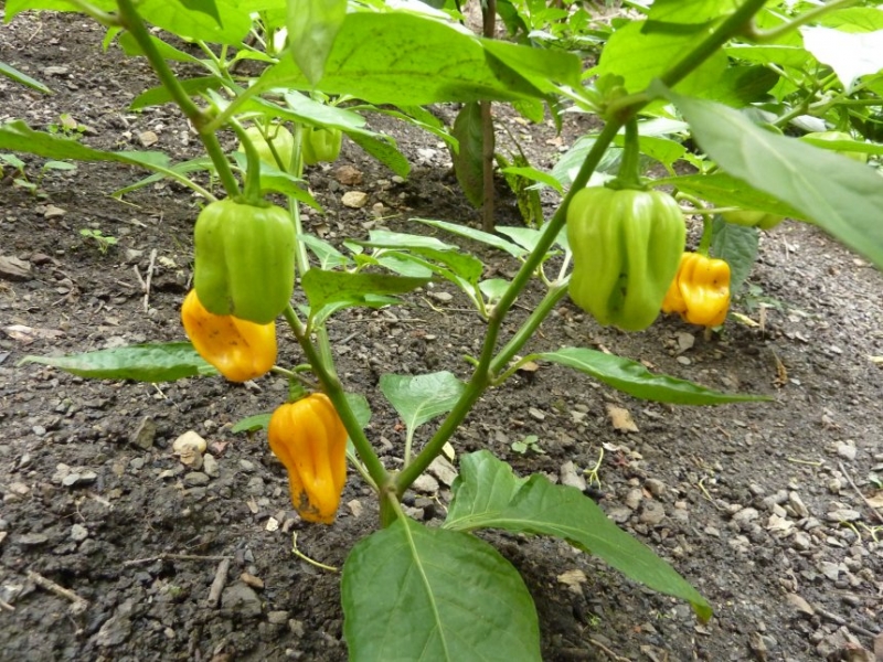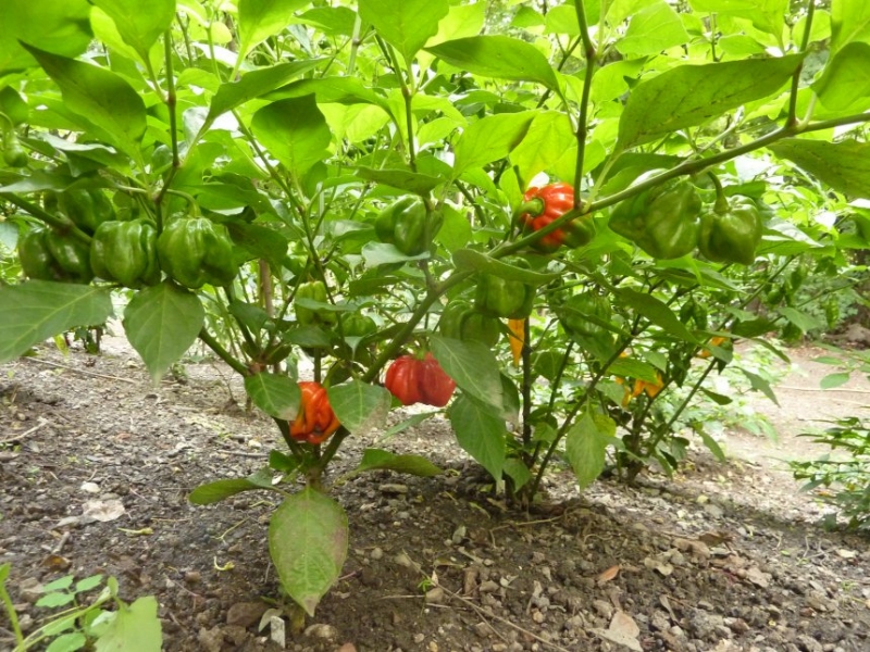 Celkový přehled situace. Nejvyšší rostliny odpovídají druhu Capsicum baccatum.