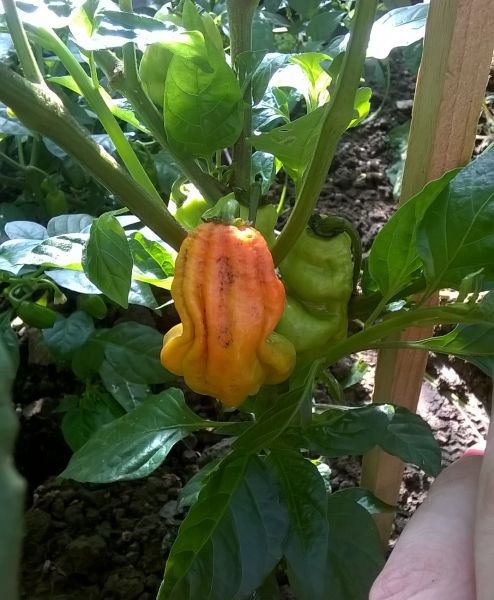 Závěr tentokrát nebude takovou chloubou, spíše naopak. Jedná se o Bahamskou kozu, u mě je z ní zakrslík a u kolegy taky. Pár plodů, rostlinka moc růst nechce. A to jsem ji sháněl na základě toho, že se má jednat o velmi plodnou a chutnou odrůdu. O chuti zatím toho moc nevíme, ale plodnost zatím není taková jakou očekáváme. Stává se Vám to taky u této odrůdy nebo se spíš jedná o nějakou biologickou variabilitu a sešly se 2 špatný semínka? Nesmím opomenout to, že klíčily ze všech úplně nejhůř.