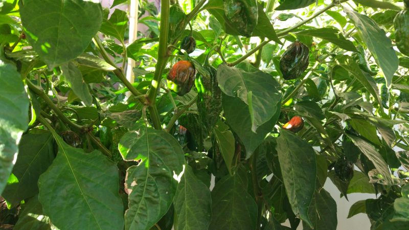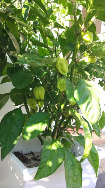 Dorset Naga plodí jak zběsilá, proběhly 2 sklizně a stále dost zelených plodů.