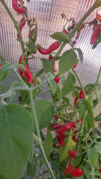 Dnes otrháno všechno Manzano Rocoto Red - celkem 41 plodů, ze tří rostlin, které jsem přezimoval.