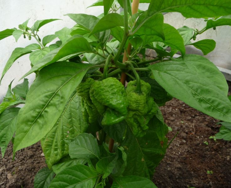Nejprve moji venkovní kříženci ze záhonu - lusky jsou ostré jako břitva, skoro až moc. Za tu pneu se omlouvám - profesionální slepota. Používám jí k podkládání pod bedničku se sazenicemi a vykoukla na mně až na fotce.