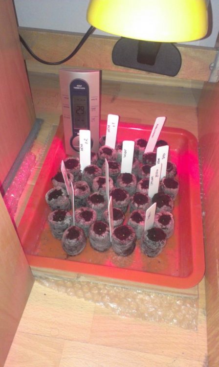 31.01.2013 - 1. den - zasadene semienka (3ks z kazdej odrody co som mal doma) a umiestnene pod lampu do tepla