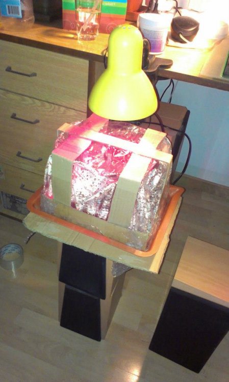 pre zvysenie vlhkosti vytvoreny "na kolene" provizorny "foliovnik" - riesenie kym neprisli mini pareniska