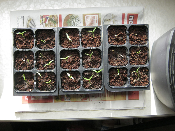 Jalapeňa a Habanera už mají první dva lístečky (trvalo jim to 12 dní), Habanera se ještě všechna nevyklubala.