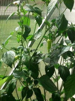 Loňský keřík Aji Cristal. Vyrostl hodně do výšky a papričky byly výborné.