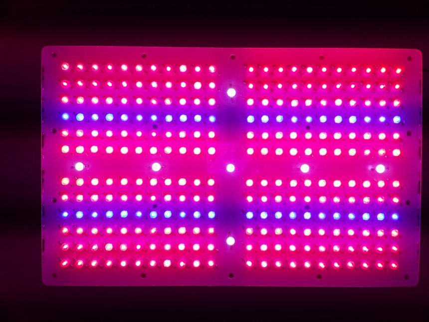 Výkon 400W slouží na růst (nesvítí první 2 a poslední 2 řady červených led)