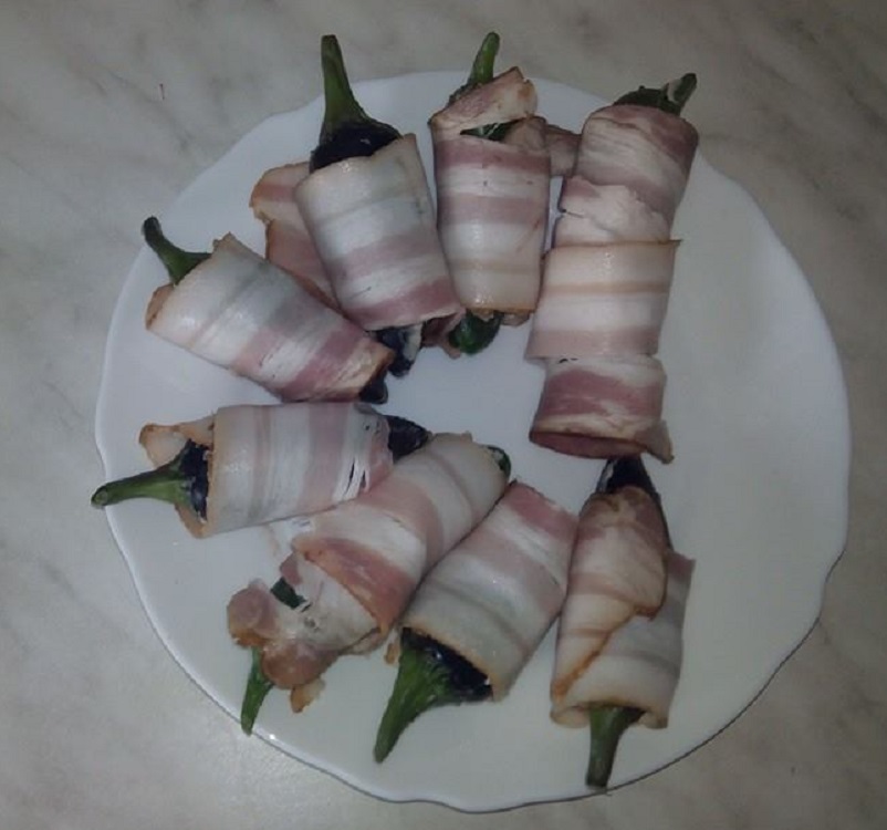 tu slaninku bych opekl aby byla křupavá jinak dobrou chuť! Já ještě musím chvilku počkat než si dám takovou papričku ,ještě jsou v růstu holky