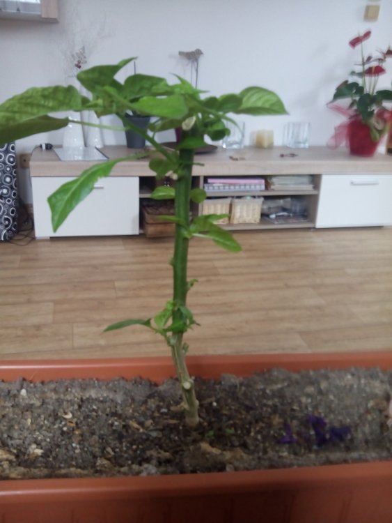 Rostlinka rok 2014, před vánoci zkrácena na "pahýl" 20cm a hned začla nasazovat nové výhonky. Teď již nasazuje květy.