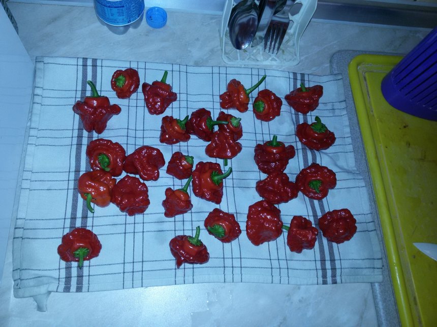 první sklizeň Scotch bonnet.