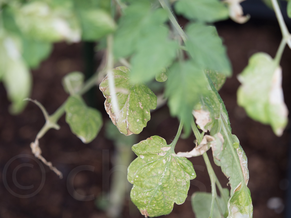 Rajče předskokan, finální stav listů bez aklimatizace na slunce.