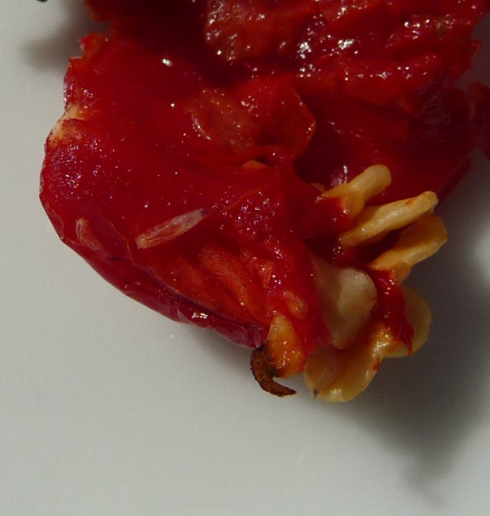 Přikládám několik obrázků "červíků", které jsem nalezl v poškozeném plodu chilli. Červíci jsou 2-3 mm dlouzí a evidentně jim chutná dužina. Znáte to někdo?