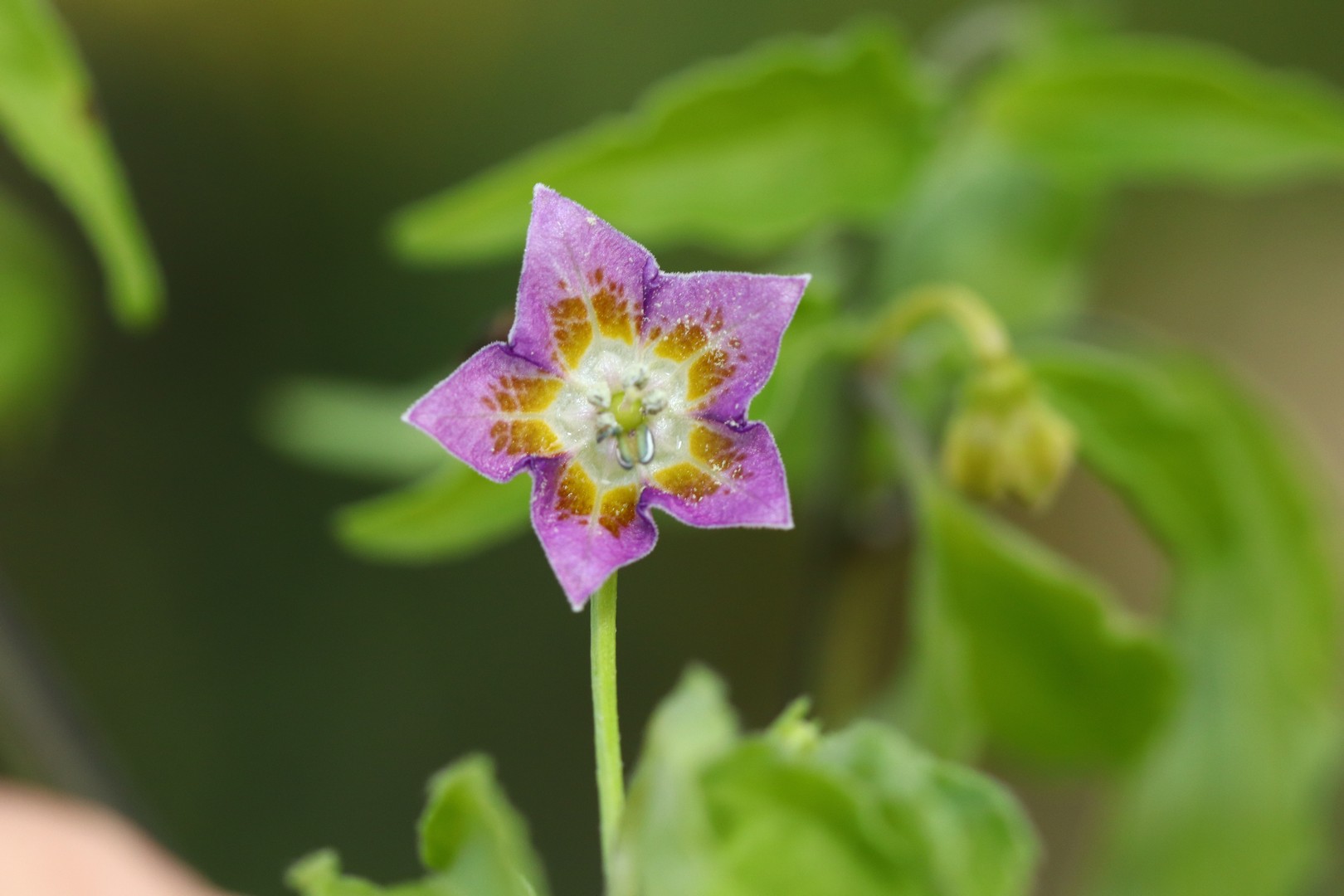 Květ na této konkrétní rostlině je spíše velmi světle fialový až narůžovělý, oproti běžné tmavě fialové koruně.