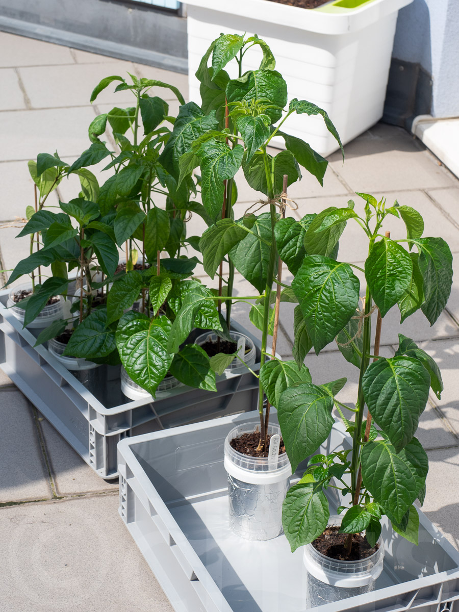 Stav ke dni, první tři kytky už musely dostat dlouhé špejle.