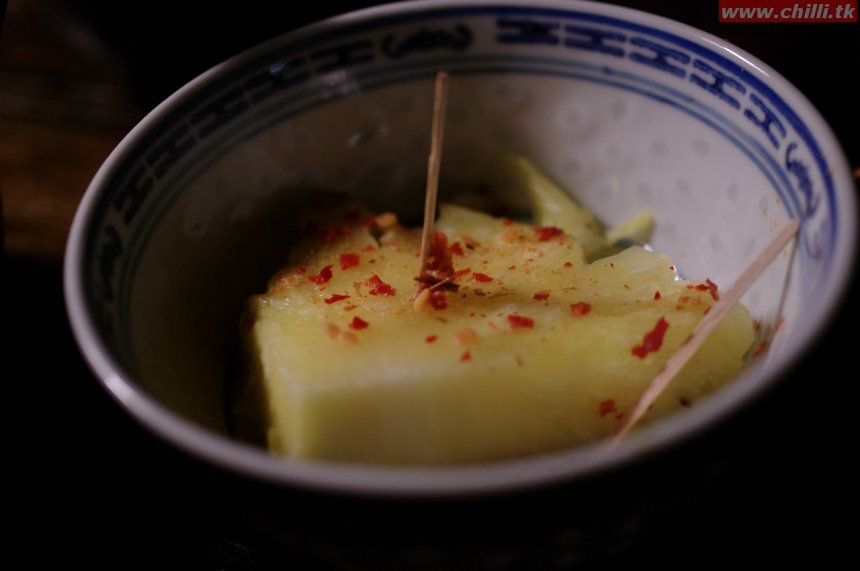 Ochutnávka v čajovně, ananas s chilli - připomínalo mi to Pepperonchino